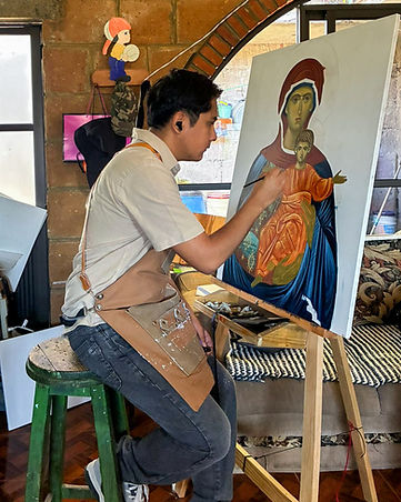 Crear Íconos sagrados con técnicas ancestrales (temple al huevo, pigmentos naturales y oro), transformando la materia en un encuentro con lo divino. Nuestro arte busca ser un puente entre el cielo y la tierra, fiel a la tradición bizantina, pero arraigado en México, ofreciendo no solo imágenes, sino ventanas para la contemplación.